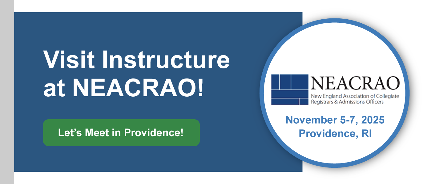 We’re proud to be a Sponsor at the 2025 NEACRAO Annual Conference! Visit our exhibit and join our session during the conference to learn more about how Instructure solutions enhance your student record management, skills recognition and credential issuing. Better yet, let’s set a time to chat.