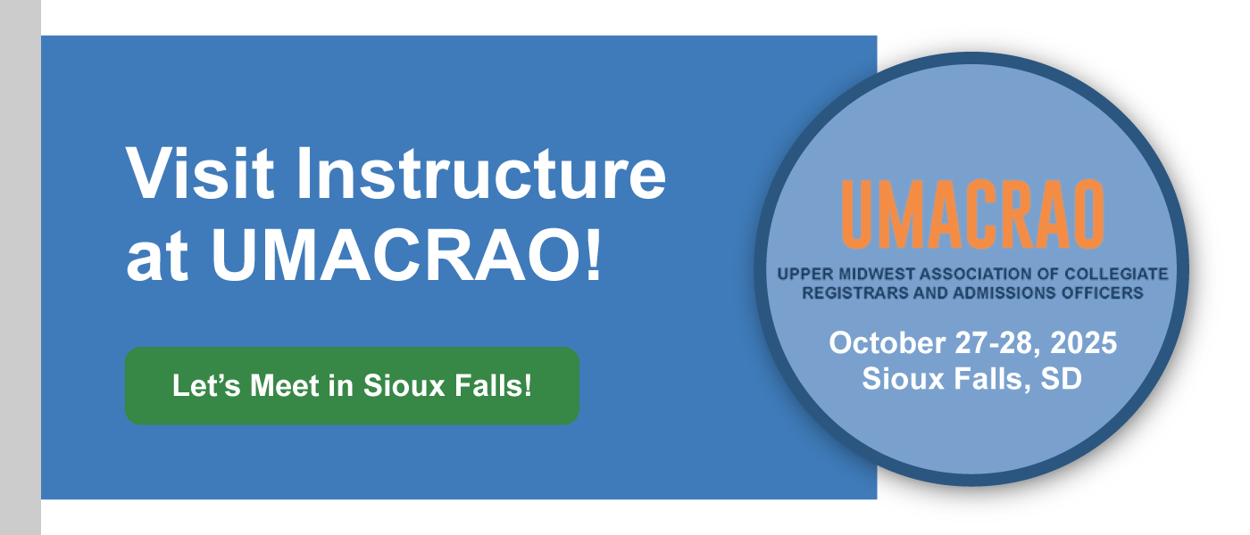 We’re proud to be a Sponsor at the 2025 UMACRAO Annual Conference. Visit our exhibit and join our session during the conference to learn more about how Instructure solutions enhance your student record management, skills recognition and credential issuing. Better yet, let’s set a time to chat.